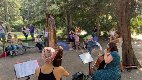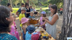 Für unser junges Publikum haben wir ein spezielles Kinderprogramm erarbeitet. Bei einem interaktiven Konzert lernen die Kinder, Naturgeräusche auf beigestellten Instrumenten zu imitieren, gemeinsam zu improvisieren und hören anschließend Werke berühmter Komponisten – gespielt von professionellen Musiker*innen – wo diese Naturklänge wieder auftauchen.