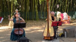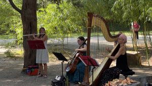 Meike Melinz – Flöte, Angela Stummer – Harfe, Cecilia Sipos – Violoncello
